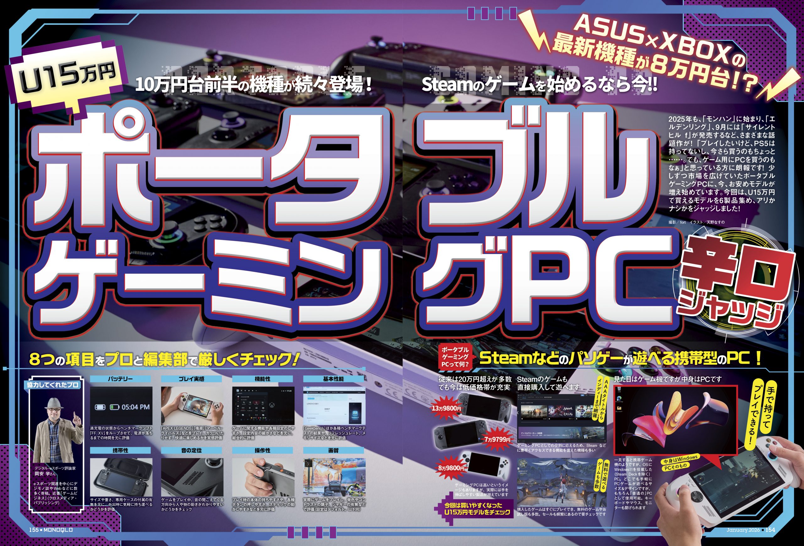 2025年も、「モンハン」に始まり、「エルデンリング」、9月には「サイレントヒル f」が発売するなど、さまざまな話題作が! 「プレイしたいけど、PS5は持ってないし、今さら買うのもちょっと……。でも、ゲーム用にPCを買うのもなぁ」と思っている方に朗報です! 少しづつ市場を広げていたポータブルゲーミングPCに、今、お安めモデルが増え始めています。今回は、U15万円で買えるモデル6製品を集め、アリかナシかジャッジしました!